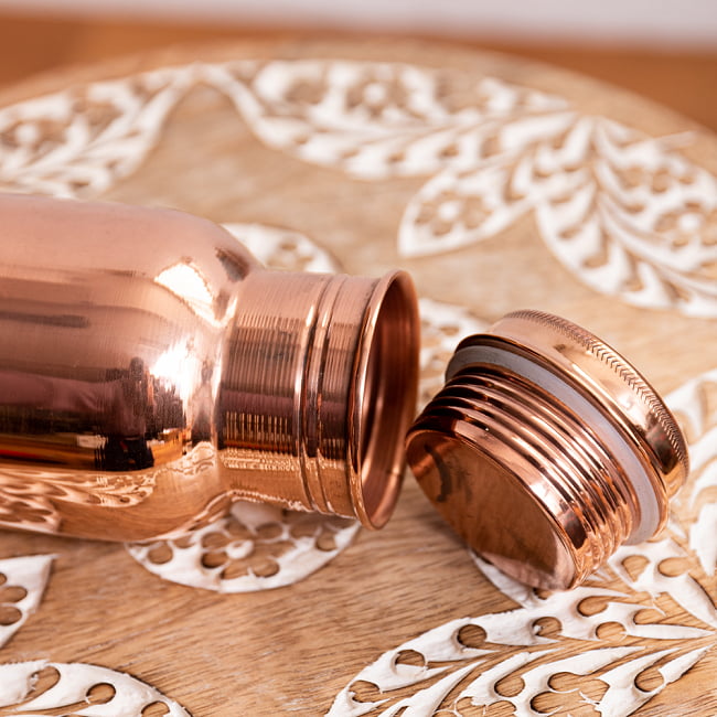 インドやネパールなどでは、アーユルヴェーダに使われている銅製ボトルです。日本国内では、飲料用としてご使用いただけません。*ラベルは付いていない場合がございます