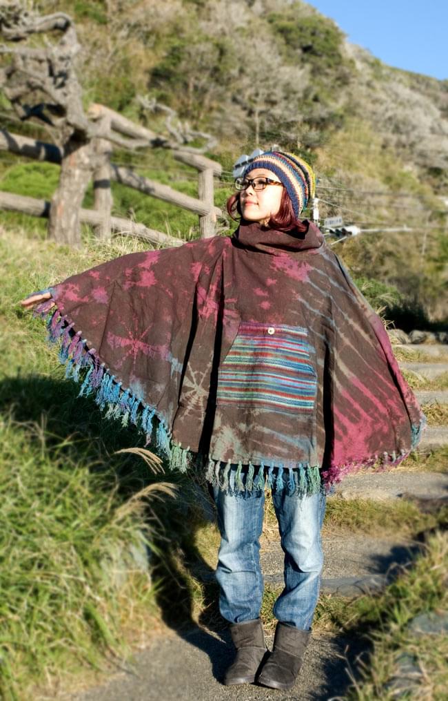 厚手ネパール伝統生地 大判ヒマラヤンポンチョ キャンプなどへオススメ