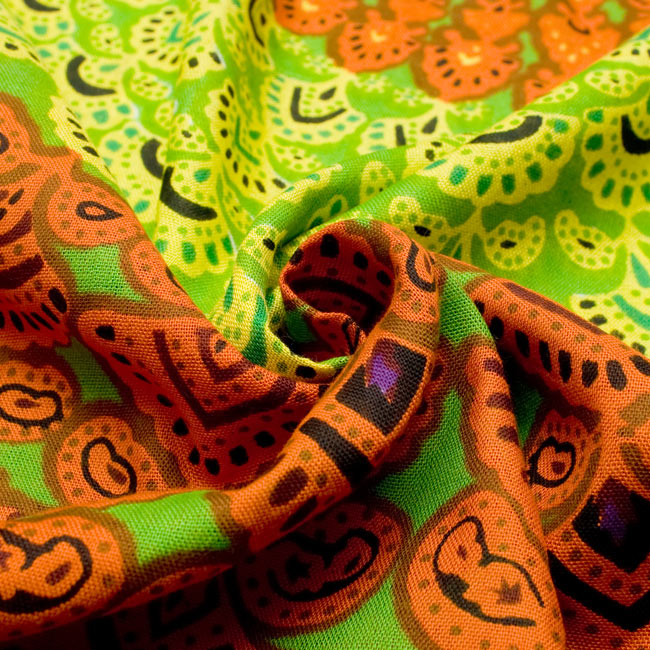 一番使いやすいサイズなので、ショール風に体に巻いたり、野外キャンプ時に日よけにしたり、頭に巻いてターバン風にしたり、カーテンの代わりにしたり、ほこりよけとしてパソコンの上にかけたり、かばんの中に入れておいてエアコンの効き過ぎた車内でちょっと羽織ったり・・・と本当に自由自在です。ビビッドな色合いなので、イベントのデコレーションとしてもピッタリですね。色違いで何枚も欲しくなる、とっても便利な布です。| 色 | 黄緑 |