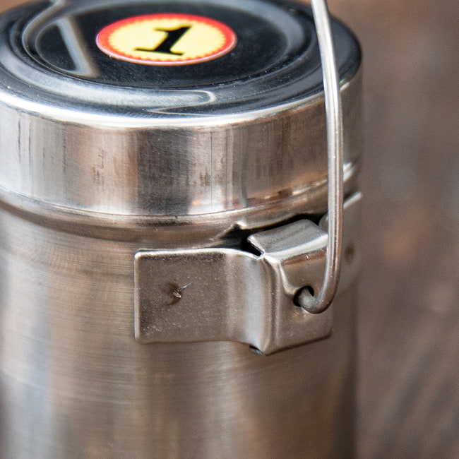 持ち手付きの小物入れです。とっても小さなマサラケースにハンドルが付いていてとってもキュート!持ちてがつくことによって特段便利になった感じではないですが…でもこんなものを作ってしまうインドの人のセンスが最高ですね。■定番のステンレス製