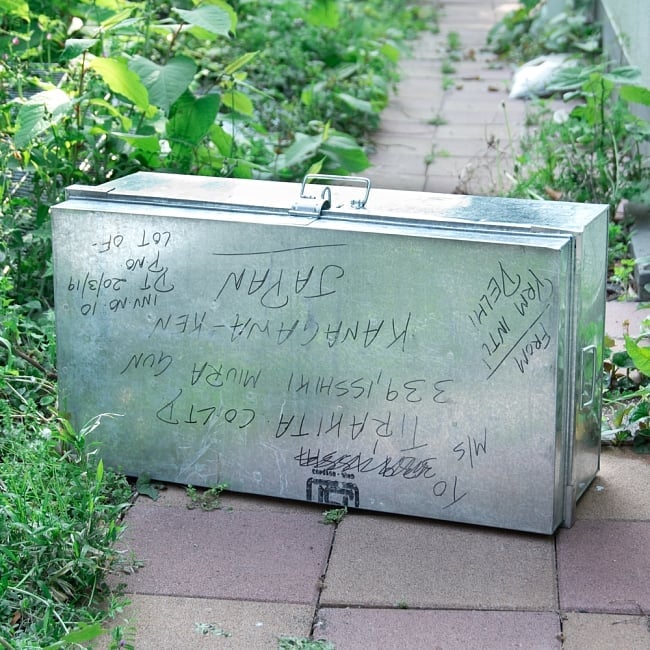 インドで荷物を運んだりする際に、使われているアルミケースです。ネパールでも似たケースが使われているのですが、嫁入り道具を運んだり、そんな用途にも使われることがあるそうです。その他、海外へ荷物を輸出するときに、壊れやすいものをこのケースに入れて保護したりもします。アルミ製でケースが軽いので、持ち運びも楽々です。