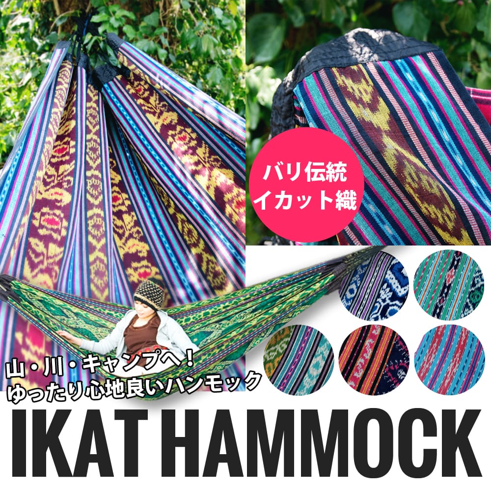 イカット織の素敵なハンモックがバリ(インドネシア)から届きました。イカットとは、日本名で『絣(かすり)』のことで、マレー・インドネシア言語の『縛る・結ぶ』を意味したものです。