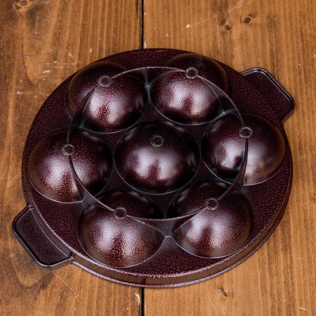たこ焼き機?っと思うフライパンですが、南インドのアッパムを作るフライパンです、米粉で作るドーナツみたいなモノで、ウチではココナッツなども使って作るので、匂いが付くのが嫌で専用のフライパンを購入しました。