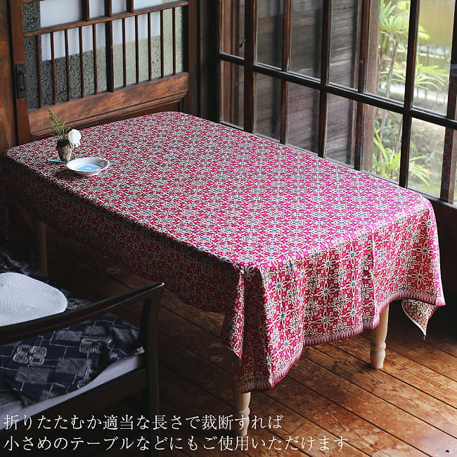 大きさも十分なのでテーブルクロスやソファーカバーへ。他にもカーテンやベットカバーとして、アジアンなベビースリングの材料としてなどなど、アイデア次第でいろいろご利用いただけます。