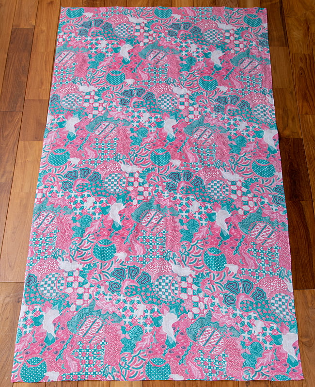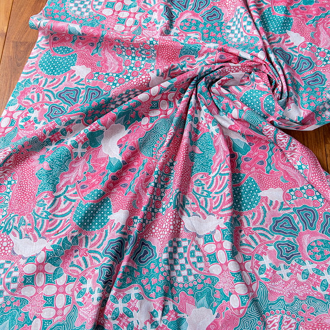 染めの部分が非常に独特なパターンを持つインドネシア伝統の染め方、ろうけつ染めをプリントして作成したアジア布のバティック。ジャワ更紗とも呼ばれています。インドネシアのバティックは、ジャワ王国の王宮文化が起源とされています。かつては、王宮の貴族のみが着用できるものでした。