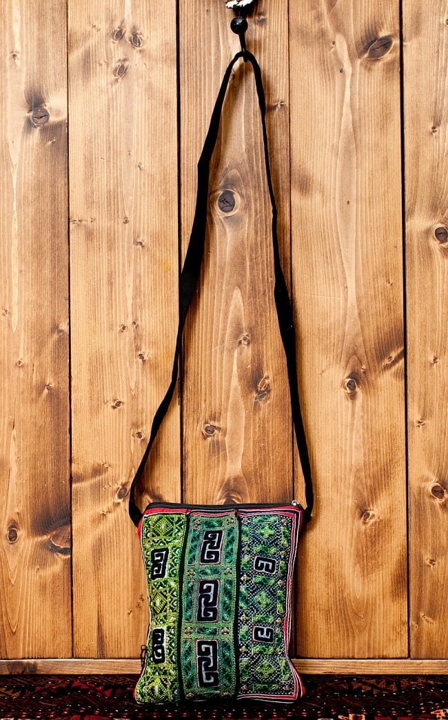 細部に至るまできちんと作られている上質なモン族刺繍のショルダーバッグです。落ち着いた配色のモン族刺繍が美しく、シンプルな服装にも良くマッチします。内部の側面には携帯などの小物をいれるためのファスナー付きで、荷物を綺麗に分けておくことができます。財布や携帯、本など日常に必要な物を持ち歩くのに便利なサイズです。
