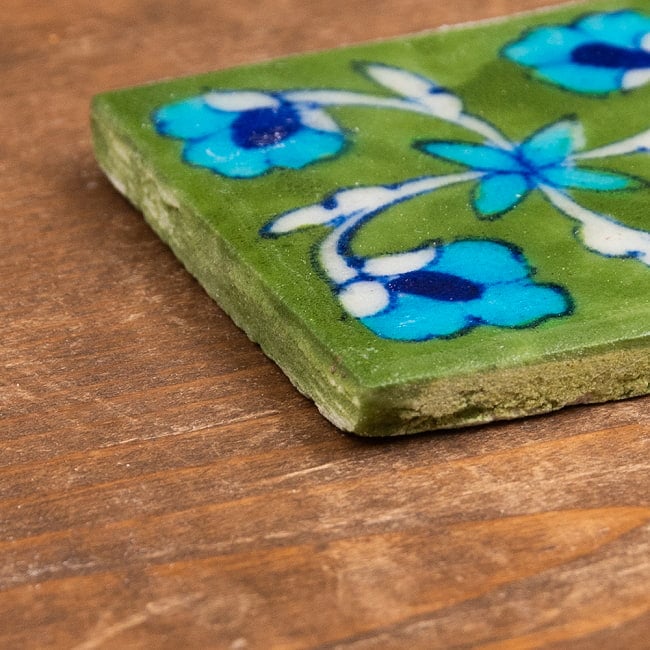 〔5cm×5cm〕ブルーポッタリー ジャイプール陶器の正方形デコレーションタイル - 緑