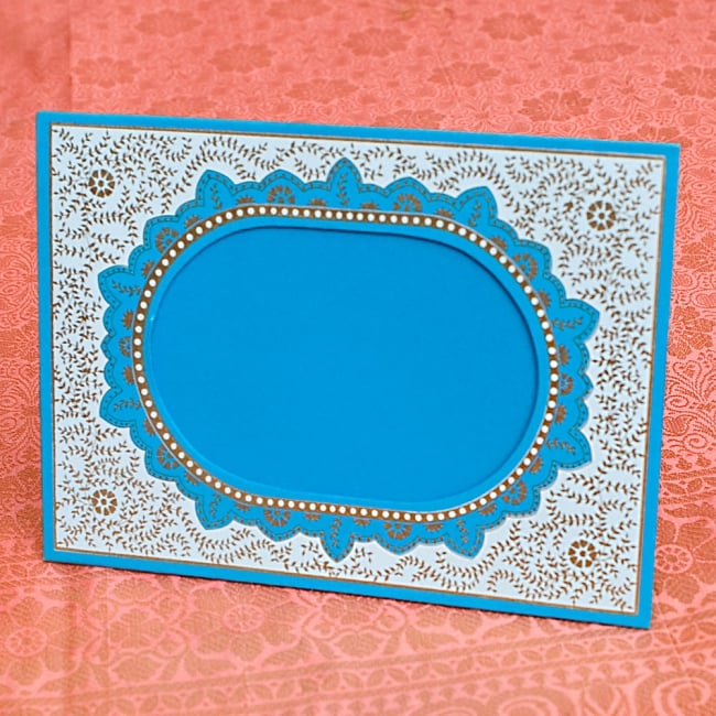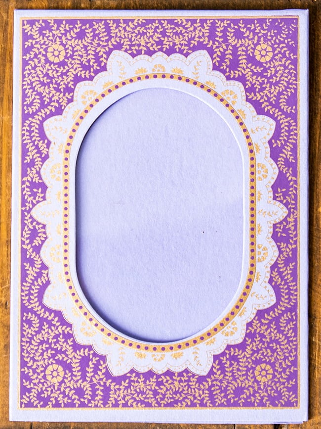 インドならではの美しいデザインが金色のペインティングによってとても豪華に施されています。ペーパーのフォトフレームですが、しっかりとした素材でとても上品に可愛らしく仕上がっています。現地では上流階級向けに販売されていることもあって、インド製品の中ではとても品質の高い一品です。
