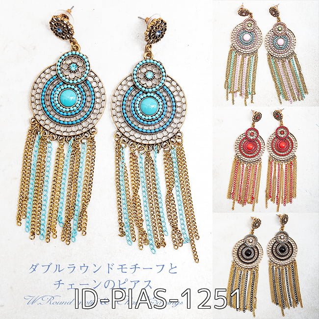 タッセルとチェーンのダブルラウンドピアス(ID-PIAS-1252)の写真です