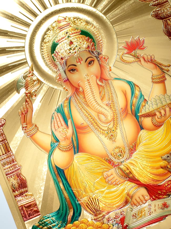 〔約40cm×約30cm〕インドのヒンドゥー神様ゴールドポスター - ガネーシャ 学問と商売の神様 通販店