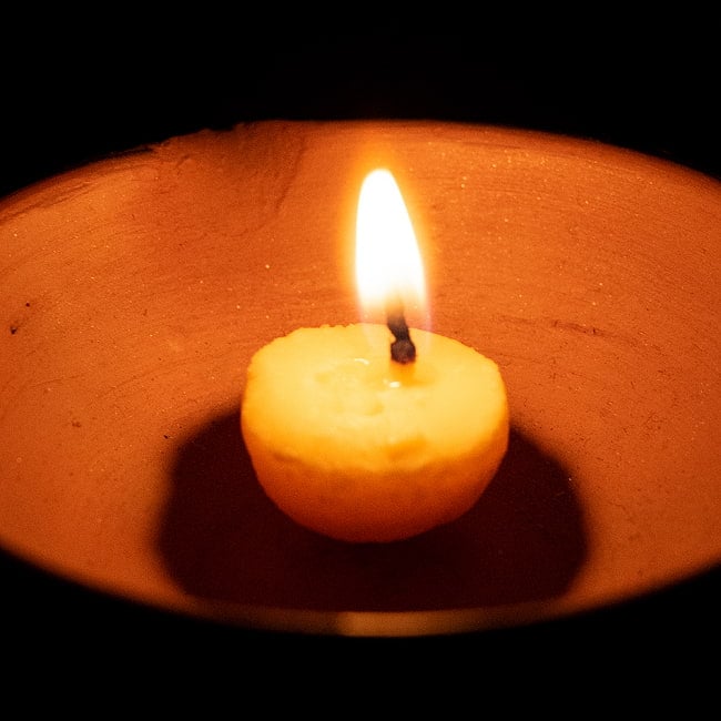 インドで礼拝用に使われている小型のキャンドルです。インド人は毎日の礼拝時にお香を焚き、このようなキャンドルを灯して神様に祈ります。通常、その様な目的のキャンドルは牛の乳で作ったギーと言う油で作成したギーキャンドルが使われます。