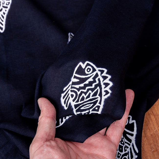 〔1m単位切り売り〕伝統の木版染め シンプルでかわいい動物デザイン布 お魚さん ブラック系〔幅約110cm〕 通販店