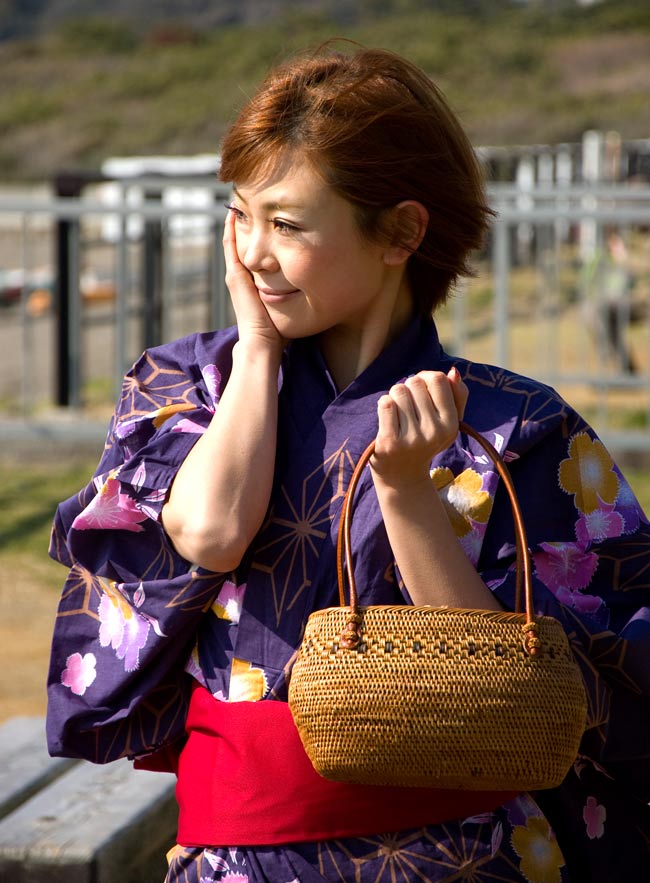モデルさんの使用例です。さまざまなお洋服に似合います。和装へもオススメ。