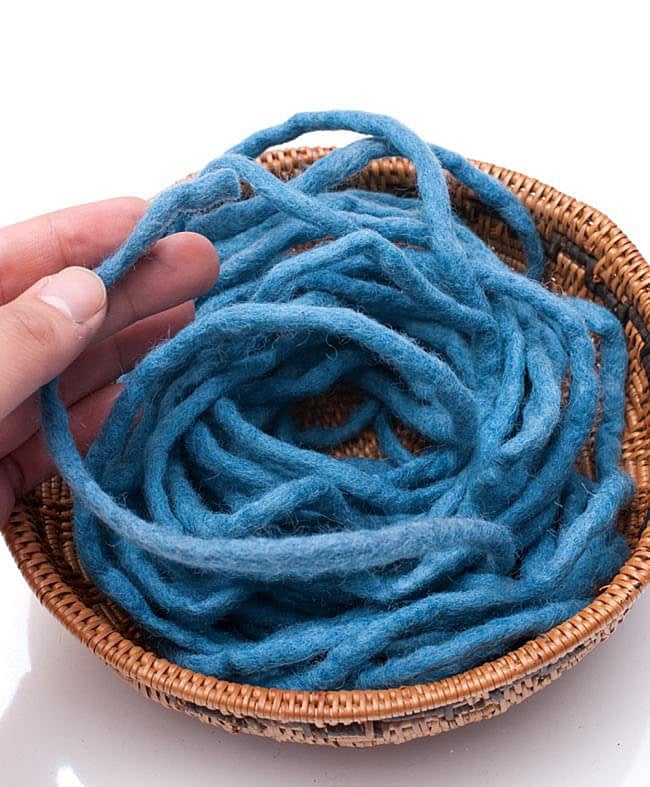 ネパール製フェルトウール糸です。この製品は、ネパール人の手で丁寧に縒り染色を施し、手間をかけてフェルトにしてあります。ぬるま湯と石鹸、そして手でコロコロと圧力を掛けると、羊毛が互いに絡みやすくなってきます。それを、時間を掛けながら一つの塊にしたのが、フェルト製品です。ネパールの農家のおばさんたちが、手間をかけながら日が暮れてから手でチクチクと作っています。■アクセ作り、手芸などへオススメ!