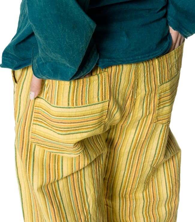 シンプルなストレートラインにストライプ柄がマッチしたコットンパンツがネパールから届きました。シンプルなデザインなので飽きずにお楽しみ頂けますね。また、デザインはゆったり目のストレートラインなので、性別関係なくお楽しみ頂けます。■さりげないエスニックを楽しんで!