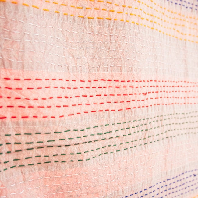 カンタ刺繍部分をアップにしてみました。インドらしいウッドブロックプリントを用いています