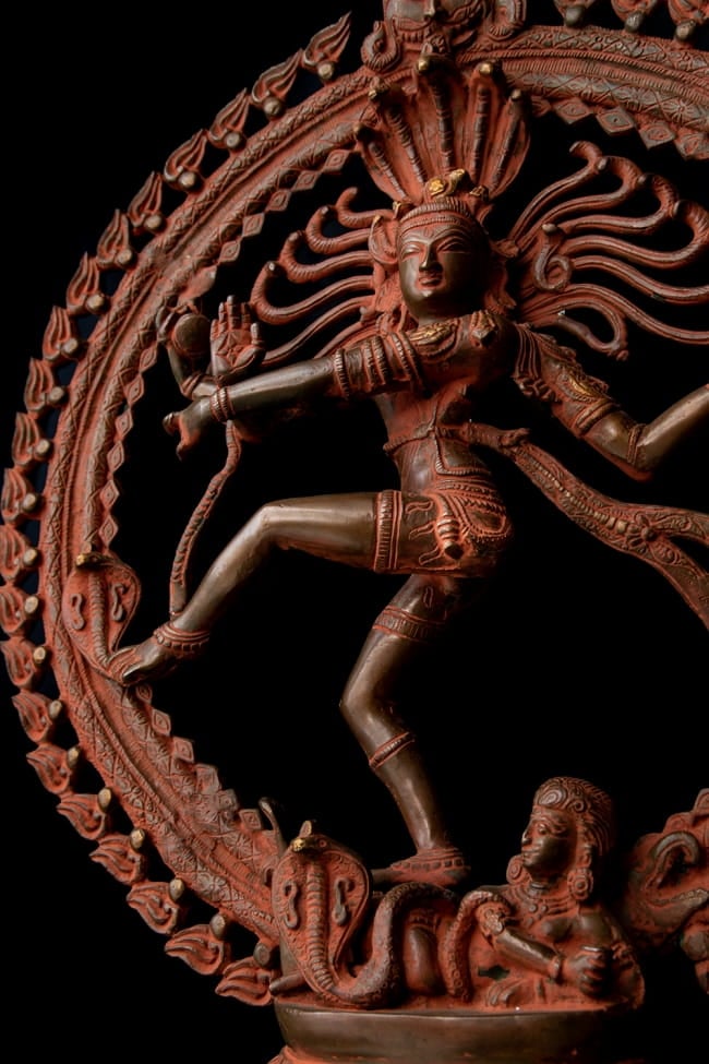 インド古典が特に有名なインド音楽ですが、実はインドには色々な種類の伝統音楽がインド各地に星のように点在しています。写真の人はバウルと呼ばれるカルカッタがあるベンガル地方の放浪吟遊詩人で、1弦や3弦の楽器を手に村や街を廻り、生計を立てている特別な人たちです。おもに野外で村人に囲まれて歌います。歌は、導師が弟子にバウルの哲学を教えるための教育媒介としても使われ、歌い手から歌い手へと、口頭で伝承されますブラス製 アンティーク調ナタラジ(ダンシング・シヴァ) 56cmの同一カテゴリ商品