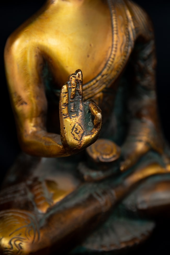 釈迦牟尼仏 坐像 光り輝くブラス製 高さ:26.5cm程度