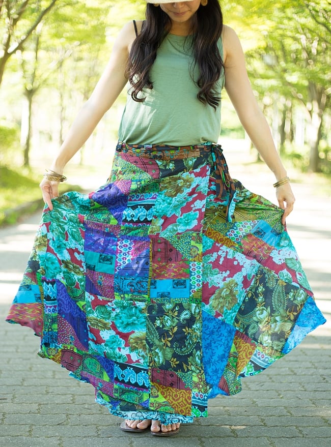 インドコットンのカラフル・パッチワーク巻きスカートの類似商品