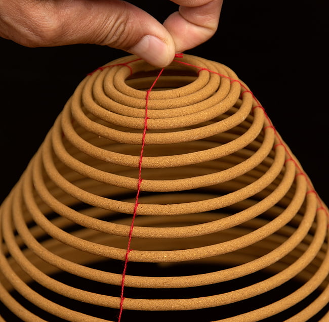 コイル状をしていて、何日も燃え続ける特別なお香です。香港やベトナムのお寺に実際に奉納されているものを、ハノイから直送してもらいました。英語ではcoil incenceなんて呼ばれているようです。一見すると蚊取り線香のような形をしていますが、紐で結ばれていて、つまみ上げるとらせん状に変形して「おっ!」と思わせる面白い形です。吊り下げ型のちょっと珍しいお香ですね。
