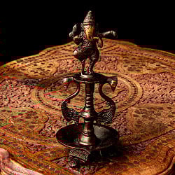 ダンシングガネーシャのオイルランプ 重厚なブラス...