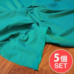 【5個セット】〔1m単位切り売り〕南インドのシンプルコットン チェック模様布〔約106cm〕 - グリーン