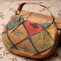 〔一点物〕伝統を紡いだ インドキリムのムーンショルダーバッグ
