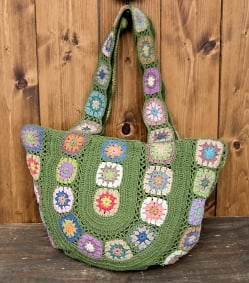 お花刺繍のショルダーバッグ【丸型】グリーン