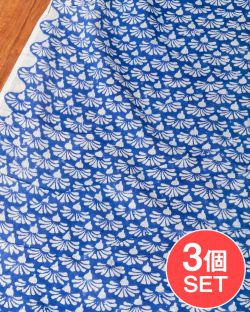 【3個セット】〔1m単位切り売り〕ジャイプル 職人手作り木版染め 色彩美しいボタニカルデザイン〔幅約110cm〕〔ブルー系 小花柄〕 おしゃれ 生地 テーブルクロス 手芸素材などへ