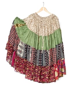 25ヤード アンティークサリーのジプシーパッチワークスカート4段【90cm】