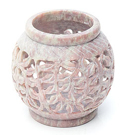 ソープストーン丸型キャンドル&お香立て - 枝模様