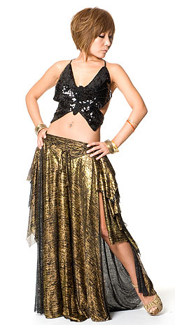 ベリーダンス衣装 スカート・ブラ 上下セット - 黒
