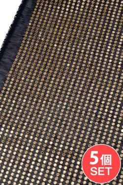 【5個セット】〔1m単位切り売り〕インドのスパンコールクロス布〔111cm〕 - ブラック