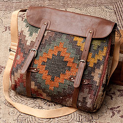 〔一点物〕伝統を紡いだ インドキリムのスクエア型ショルダーバッグ