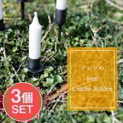 【3個SET】お買い得! インドのアイアン キャンドル スタンドミニ 台つき
