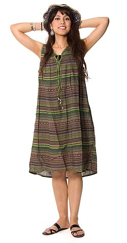 ボーダー リボンワンピース 【緑系】