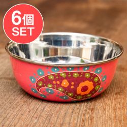 【送料無料・6個セット】手描きカシミールペイントのカトリ・カレー小皿[直径:10cm x 高さ:4cm ] - ピンクペイズリー