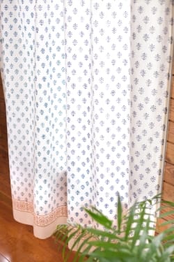〔100cm×200cm〕インドの木版染め 手作りウッドブロックプリントのサフェードカーテン - 青系 花柄