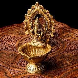 ガネーシャのオイルランプ 重厚なブラス製 高さ20.5cm
