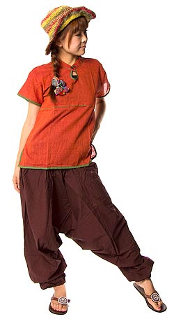 半袖コットンパイピングシャツ - 赤茶