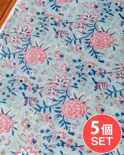 【5個セット】〔1m単位切り売り〕ジャイプル 職人手作り木版染め 色彩美しいボタニカルデザイン〔幅約107cm〕〔ミントブルー系 更紗柄〕 おしゃれ 生地 テーブルクロス 手芸素材などへ