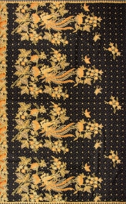 〔190cm*120cm〕インドネシア伝統のコットンバティック - 黒・孔雀と牡丹