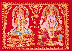 神様柄タペストリー(ラクシュミ-・ガネーシャ)
