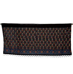 インドのコットンカフェカーテン【花柄】 - 黒