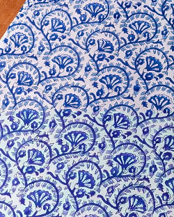 〔1m単位切り売り〕ジャイプル 職人手作り木版染め 色彩美しいボタニカルデザイン〔幅約106cm〕〔ブルー系 更紗柄〕 おしゃれ 生地 テーブルクロス 手芸素材などへ