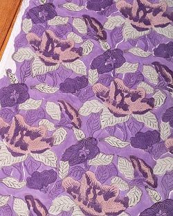 〔1m単位切り売り〕ジャイプル 職人手作り木版染め 色彩美しいボタニカルデザイン〔幅約111cm〕〔パープル系 更紗柄〕 おしゃれ 生地 テーブルクロス 手芸素材などへ