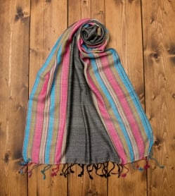 カラフルストライプスカーフ- グレー