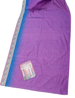 〔1m単位切り売り〕南インドのハーフボーダー・シンプル・コットン生地 - 紫×青象さん〔幅約110cm〕
