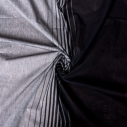 〔1m単位切り売り〕南インドのバイカラーセンターストライプ布〔幅約108cm〕 - ブラック×グレー