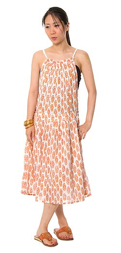 サイドボタン ローウェストワンピース 【葉・オレンジ】